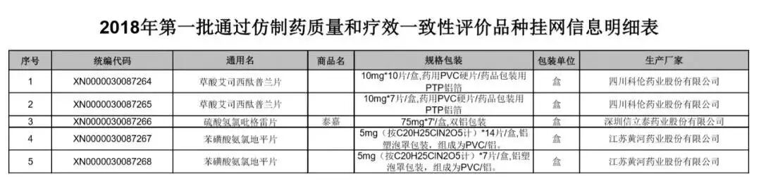 其中信立泰的硫酸氫氯吡格雷片為首批通過(guò)一致性評價(jià)品種,而科倫的草酸艾司西酞普蘭片和黃河藥業(yè)的苯磺酸氨氯地平片為第二批通過(guò)一致性評價(jià)的品種。
